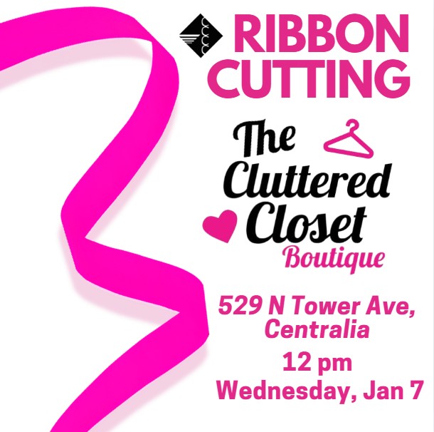 Mark your calendars!! The Cluttered Closet Boutique is having a big ribbon cutting on Wednesday, December 10th!! It will be at 12:00 pm, exclusive coupons being handed out from 10:30am-1 PM! Ribbon Cutting for The Cluttered Closet is located at 529 N Tower, in Centralia! See you then!!