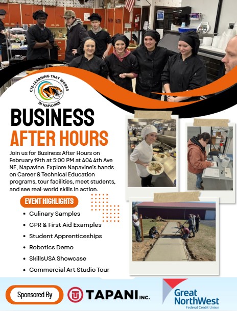 Organizer Centralia-Chehalis Chamber of Commerce Phone 360-748-8885 Email [email protected] Category Chehalis Date Feb 19 2026 Time 5:00 pm - 7:00 pm Labels Business After Hours February Business After Hours! Thursday, February 19 Napavine High School CTE Program 5 – 7 pm 404 – 4th NE, Napavine Share this event + Add to Google Calendar + iCal / Outlook export Tags: 2026, Business After Hours, Centralia-Chehalis Chamber of Commerce, Lewis County