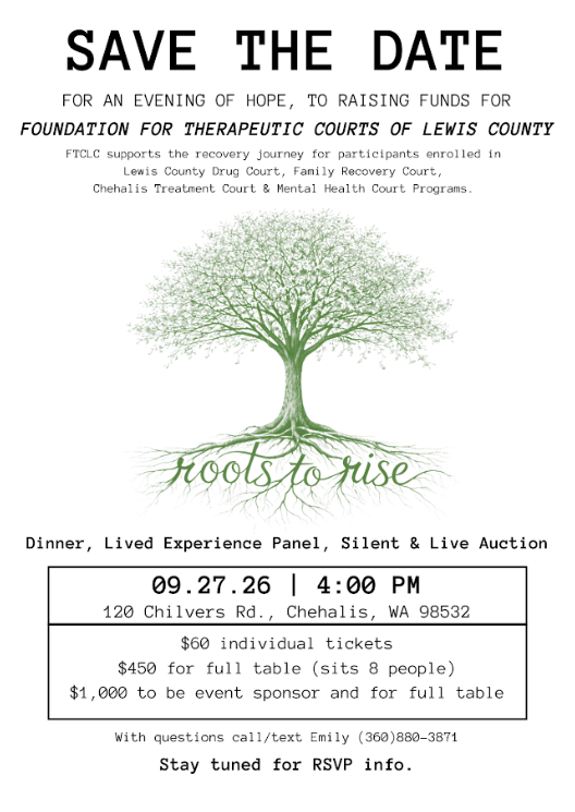 Join Lewis County Drug Court on September 27, 2026 at 4:00 PM for an evening of hope benefiting the Foundation for Therapeutic Courts of Lewis County.